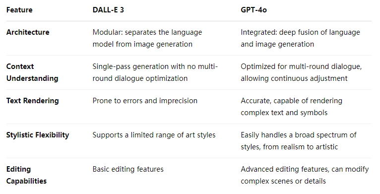 In the field of image generation, OpenAI’s DALL-E series has set the industry benchmark. Nevertheless, GPT-4o’s text-to-image capability is not just a routine upgrade—it represents a sweeping technological transformation. Compared to the DALL-E series, GPT-4o has made significant progress in numerous areas