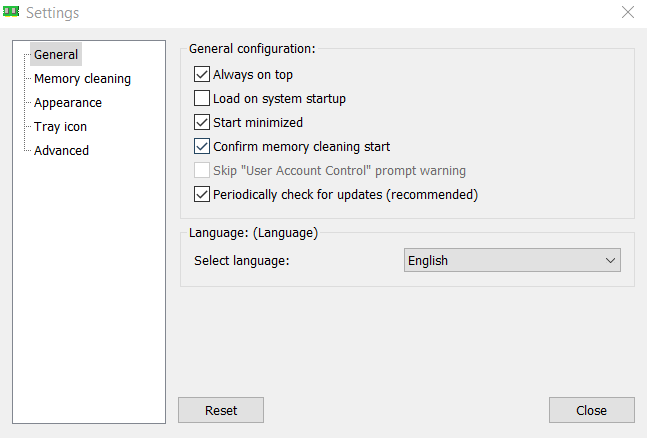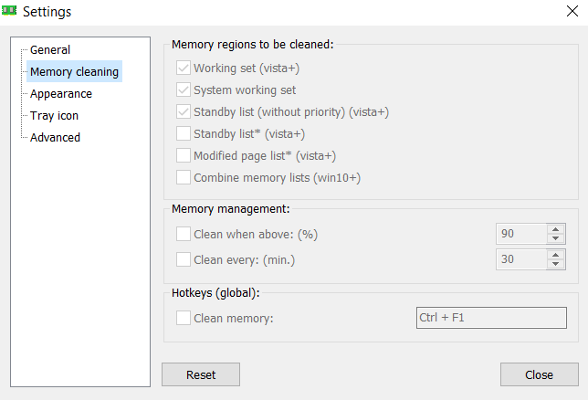 在这里,你可以勾选需要清理的内存区域并选择清理间隔,还可以设置清理内存的快捷键。