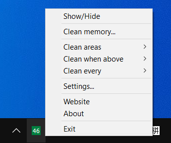 在日常工作中,其实无需打开软件界面,因为软件小图标会显示在电脑右下角的工具栏中。只需在工具栏图标上右键点击,然后选择“清理内存…(Clean memory…)”。软件还提供了清理区域、边界和间隔的快速设置。
