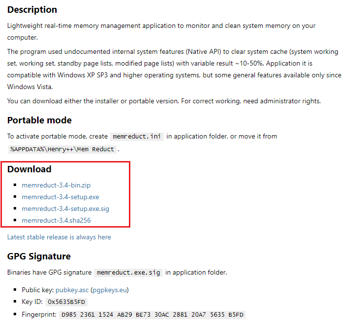 进入Mem Reduct 官方网站,然后向下滚动找到“下载(Download)”按钮。
