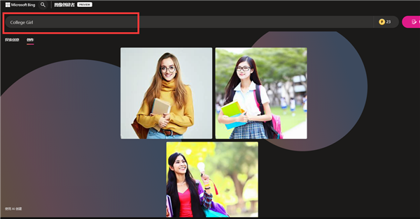 下面是一个示例:我们在搜索框内输入“College Girl”,就可以出现对应的图片。